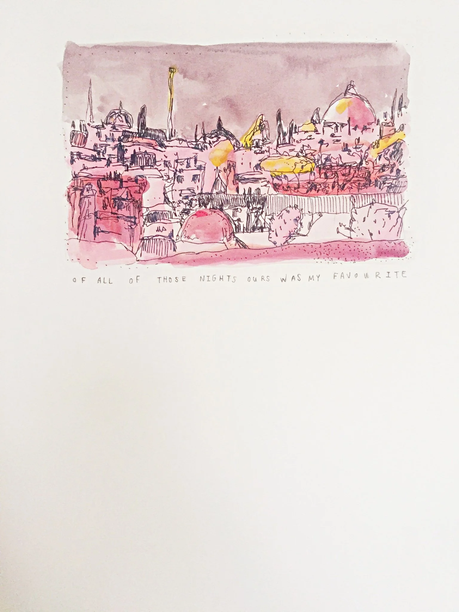 Of All the Nights (gouache and pen on paper, 11" x 14", 2017)